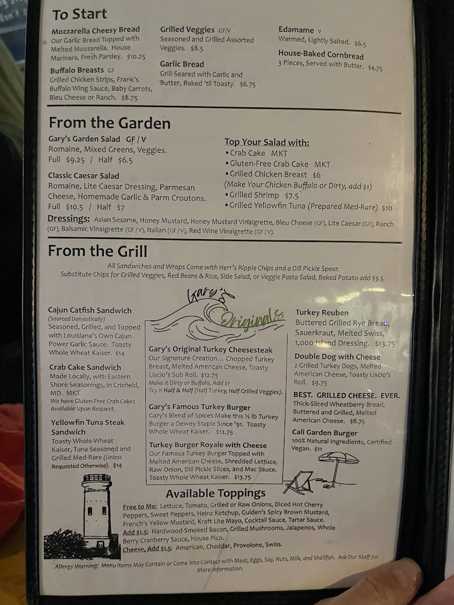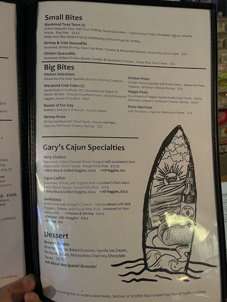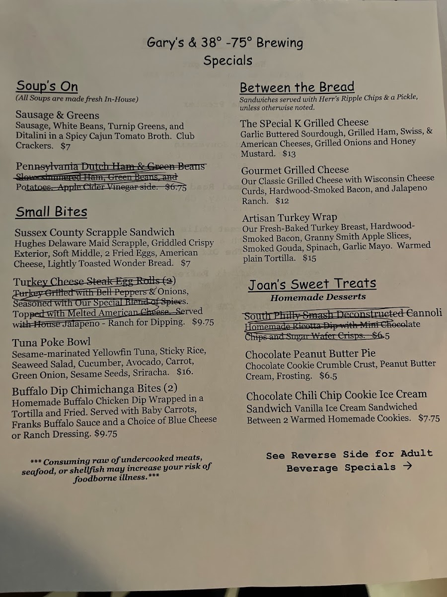 Gary’s Dewey Beach Grill / 38° -75° Brewing delivers a menu that feels both approachable and thoughtfully crafted, with a clear emphasis on quality and house-made flavor. The highlight is undoubtedly the Freshly Brewed Beers, which showcase a range of styles that pair seamlessly with the food, while the rich and satisfying Stout stands out for its depth and smooth finish. The menu overall strikes a pleasing balance between classic beachside comfort fare and elevated pub offerings, making it easy to find something for every palate. Each dish complements the brewery’s identity, creating a cohesive dining experience where the flavors of the kitchen and the brewery enhance one another. Whether stopping in for a casual bite or settling in to explore their beer selection, the menu leaves a lasting impression of consistency, freshness, and genuine attention to detail.